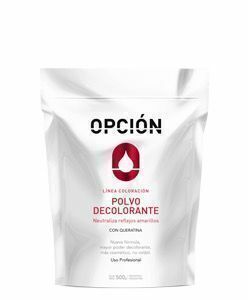 El polvo decolorante opción contiene una nueva fórmula, extra blanco, capaz de aclarar mayor cantidad de tonos, manteniendo una excelente cosmeticidad.